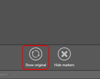 Sie können mit Original anzeigen / Effekt anzeigen zwischen dem Eingabe- und Ausgabebild wechseln. Mit Marker anzeigen / Marker ausblenden können Sie die Hilfslinien aktivieren bzw. deaktivieren.